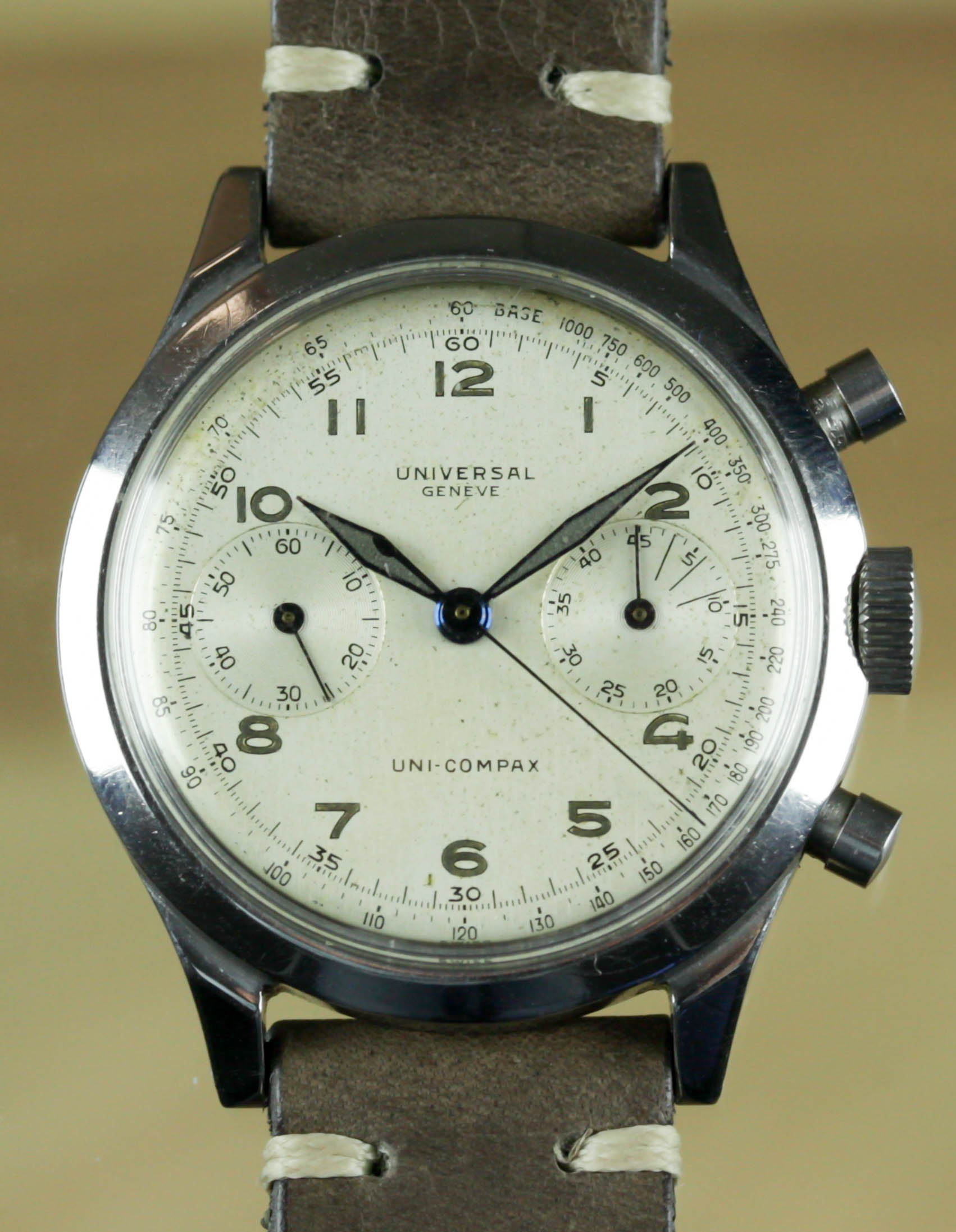 Para que os hagais una idea, por aquella época Universal Genève estaba muy por encima de marcas a día de hoy punteras, como la “todopoderosa” Rolex. No sólo decidieron especializarse en relojes cronógrafos con todo tipo de complicaciones (calendarios completos, fases lunares, segundo uso horario,…) sino que decidieron que ellos mismos desarrollarían sus propios calibres dejando de lado Ebauches como Venus o la mismísima Lemania (creadores del calibre 321 de Omega, el Moonwatch)
